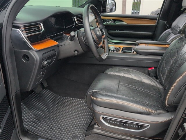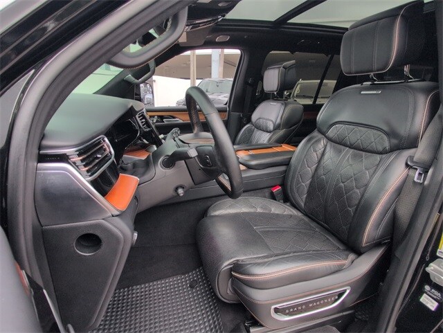 2023 Jeep Grand Wagoneer Series III Diamond Black Crystal Pearlcoat CARFAX One-Owner. 4WD 8-Speed Automatic 3.0L I6 3rd row seats: bench, Adjustable pedals, Body Color Roof, Garage door transmitter, Heads-Up Display, Heated steering wheel, Leather steering wheel, Memory seat, Navigation System, Pedal memory, Power Liftgate, Power moonroof, Radio: Uconnect 5 Nav w/12.0" Display, Rear dual zone A/C, Remote keyless entry, Security system, Wheels: 22" x 9.0" Premium 4 Aluminum.