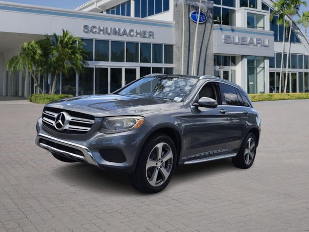Gray 2017 Mercedes-Benz GLC 300 2.0L Turbocharged 9-Speed Automatic RWD GLC 300, 4D Sport Utility, 2.0L Turbocharged, 9-Speed Automatic, RWD, Gray, Leatherette, 18-inch Alloy Wheels, 18" 5-Spoke Alloy Wheels, 3.27 Axle Ratio, 4-Wheel Disc Brakes, 6 Speakers, ABS brakes, Air Conditioning, AM/FM radio, Anti-whiplash front head restraints, Auto tilt-away steering wheel, Auto-dimming door mirrors, Auto-dimming Rear-View mirror, Automatic temperature control, Brake assist, Bumpers: body-color, CD player, Child-Seat-Sensing Airbag, Delay-off headlights, Driver door bin, Driver vanity mirror, Dual front impact airbags, Dual front side impact airbags, Electronic Stability Control, Emergency communication system: mbrace, Exterior Parking Camera Rear, Four wheel independent suspension, Front anti-roll bar, Front Bucket Seats, Front Center Armrest, Front dual zone A/C, Front reading lights, Fully automatic headlights, Garage door transmitter: Homelink, Genuine wood console insert, Genuine wood dashboard insert, Genuine wood door panel insert, Heated door mirrors, Illuminated entry, Knee airbag, Leather steering wheel, Low tire pressure warning, MB-Tex Upholstery, Memory seat, Occupant sensing airbag, Outside temperature display, Overhead airbag, Overhead console, Panic alarm, Passenger door bin, Passenger vanity mirror, Power door mirrors, Power driver seat, Power Liftgate, Power passenger seat, Power steering, Power windows, Premium audio system: COMAND®, Radio data system, Radio: Audio 20 w/Single CD/DVD, Rain sensing wipers, Rear anti-roll bar, Rear fog lights, Rear reading lights, Rear seat center armrest, Rear window defroster, Rear window wiper, Remote keyless entry, Roof rack: rails only, Security system, Speed control, Speed-sensing steering, Split folding rear seat, Steering wheel memory, Steering wheel mounted audio controls, Tachometer, Telescoping steering wheel, Tilt steering wheel, Traction control, Trip computer, Turn signal indicator mirrors, Variably intermittent wipers, Weather band radio.
